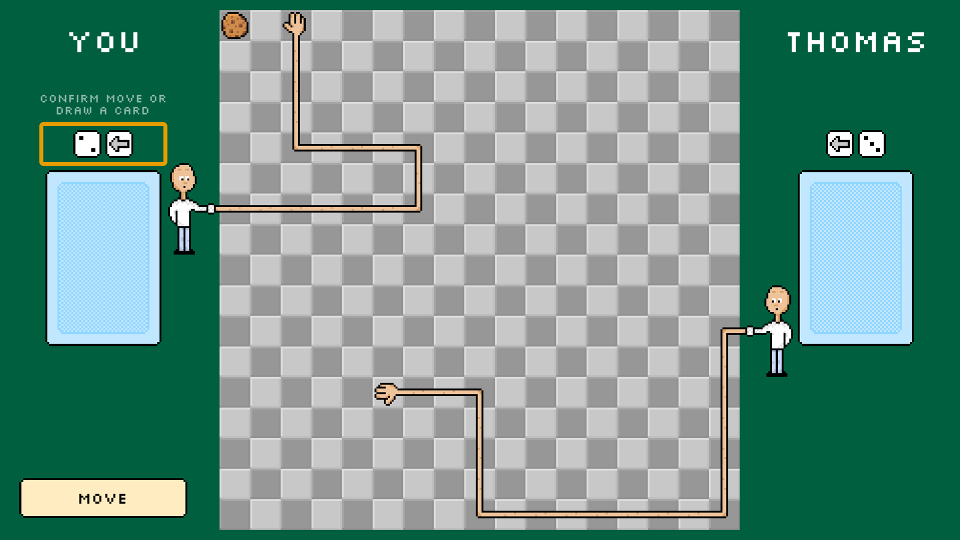 Catch the cookie before your opponent. Roll the dice - choose to move or draw a card. If in doubt follow the in-game instructions.